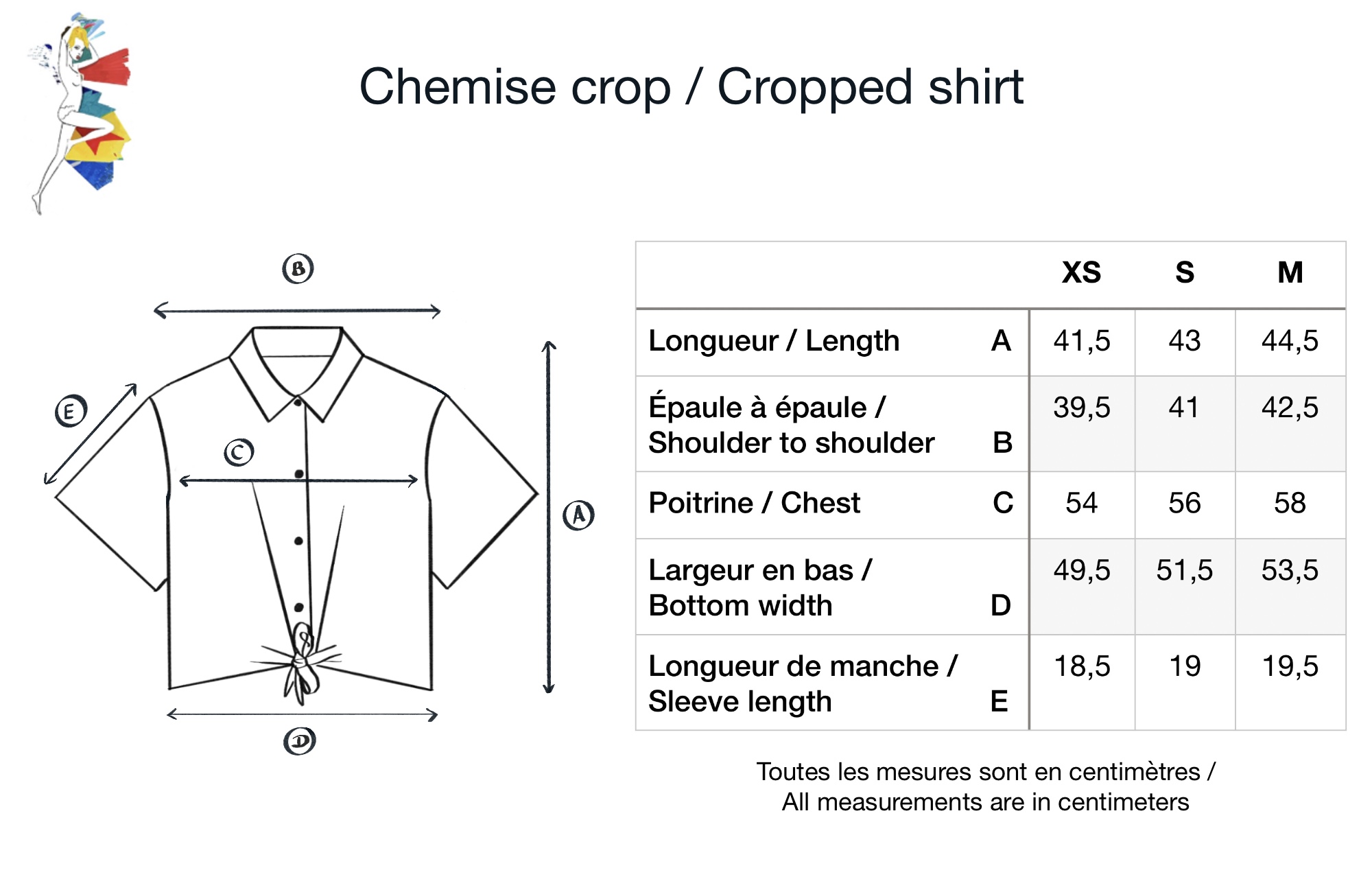 -Cropped cotton shirt, straight cut with an adjustable knot at the waist. Mother-of-pearl buttons.