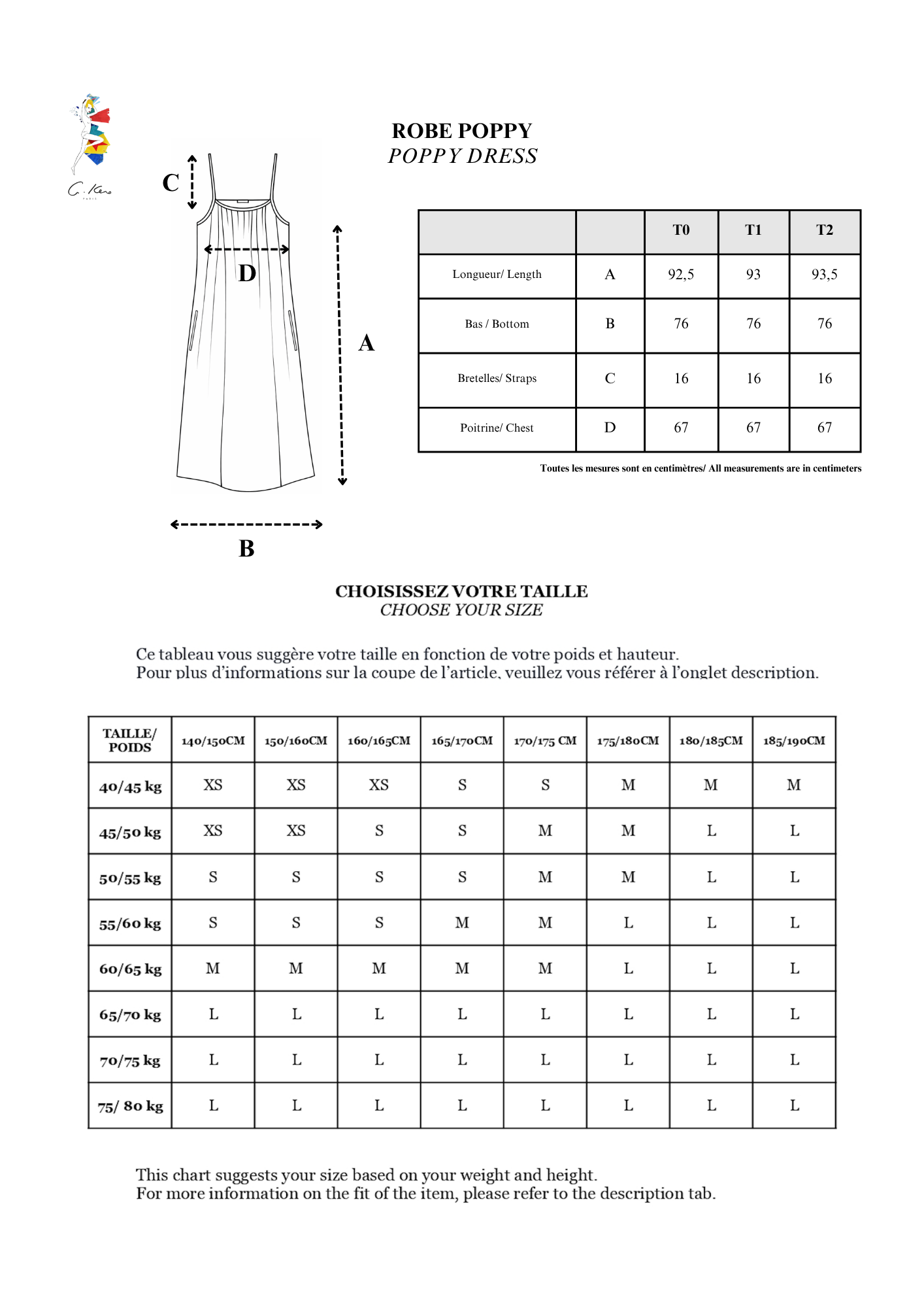 The model is wearing a size T1 (equivalent to a UK size 8 or US size 4).