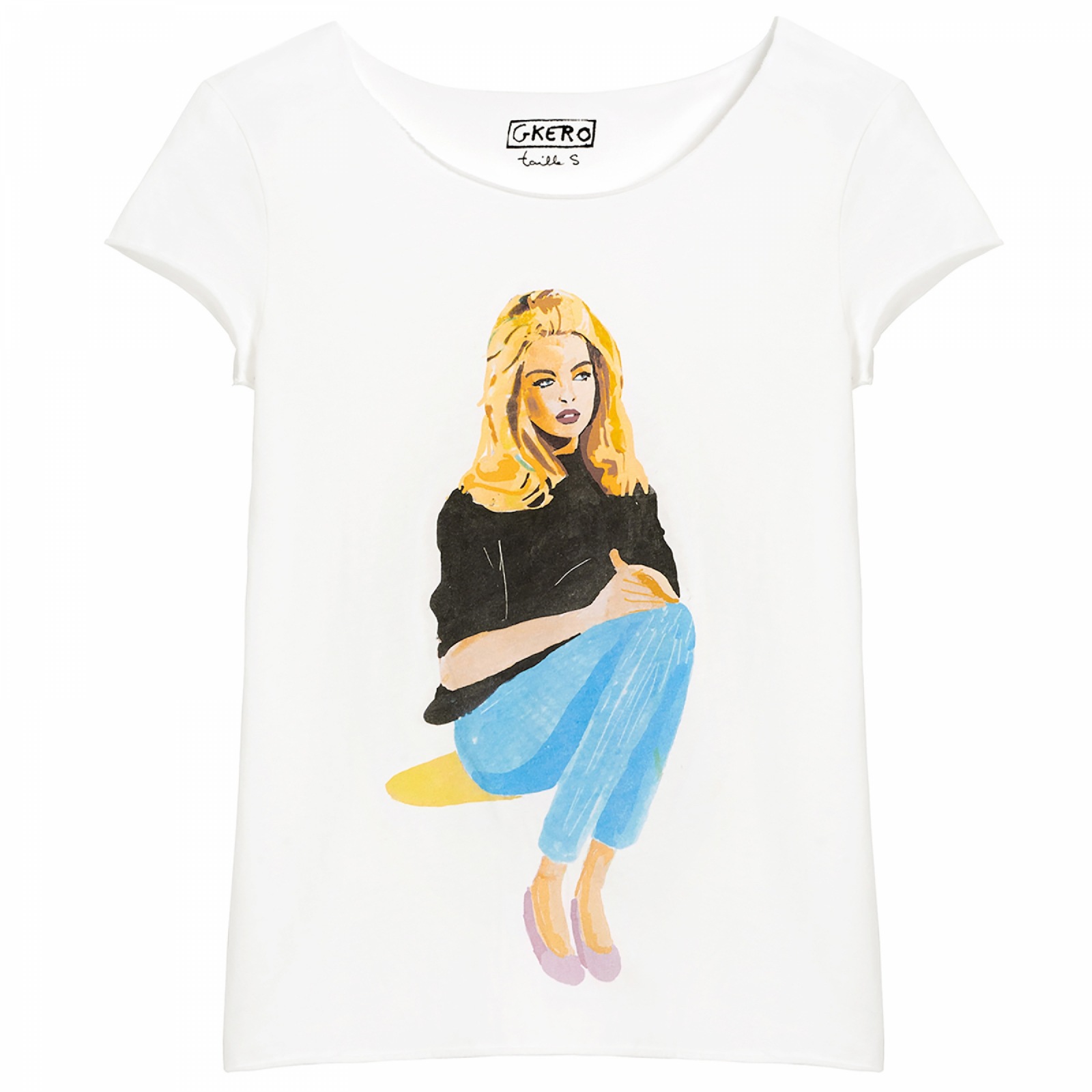 Women raw edges t-shirt. High quality cotton, very sweet - thread 40 with a woman print. Numbered serie. The name of this artwork is "La Petite Anglaise".