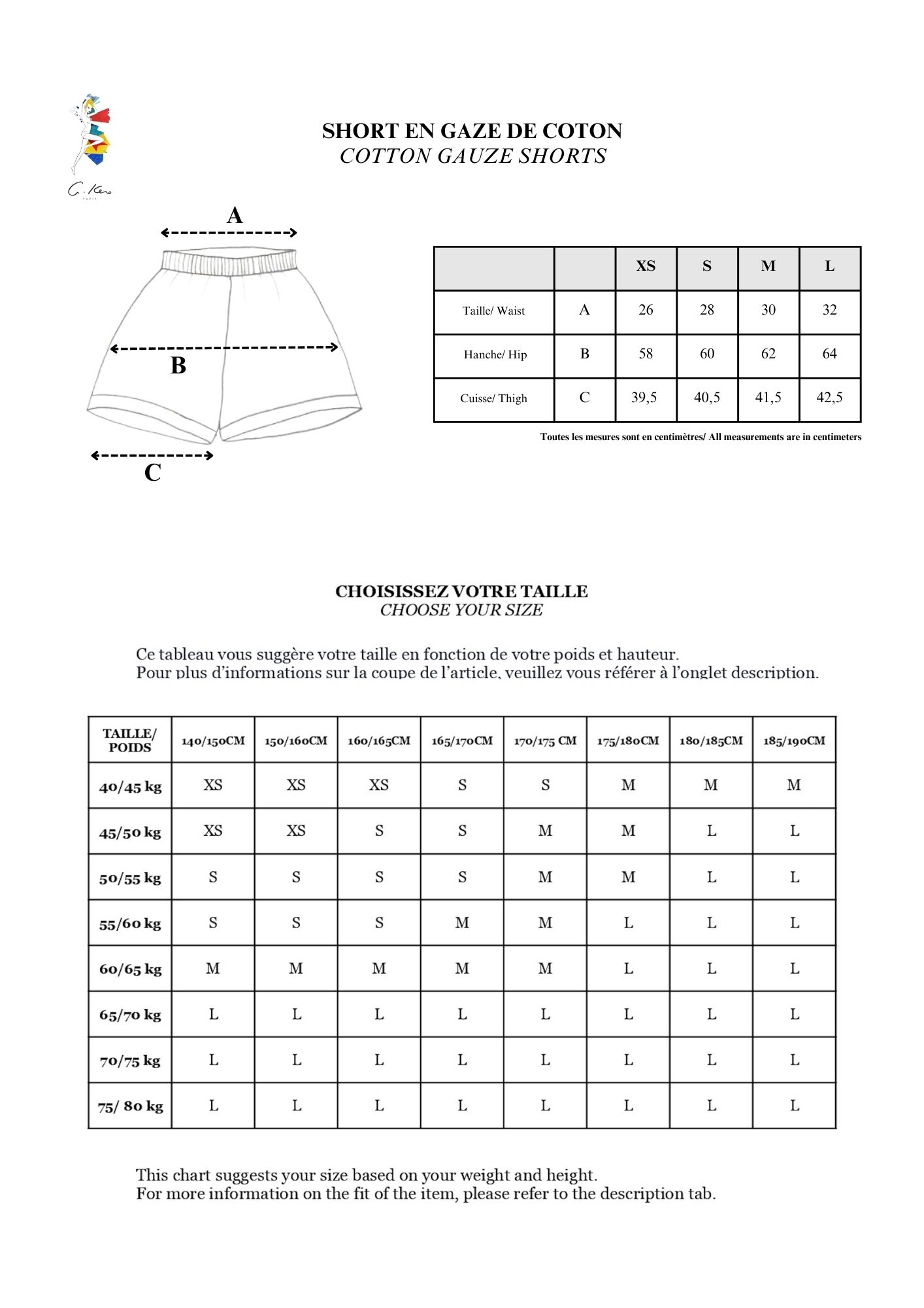 Advice: Shorts – Fitted elastic waist. Take one size up from your usual size.