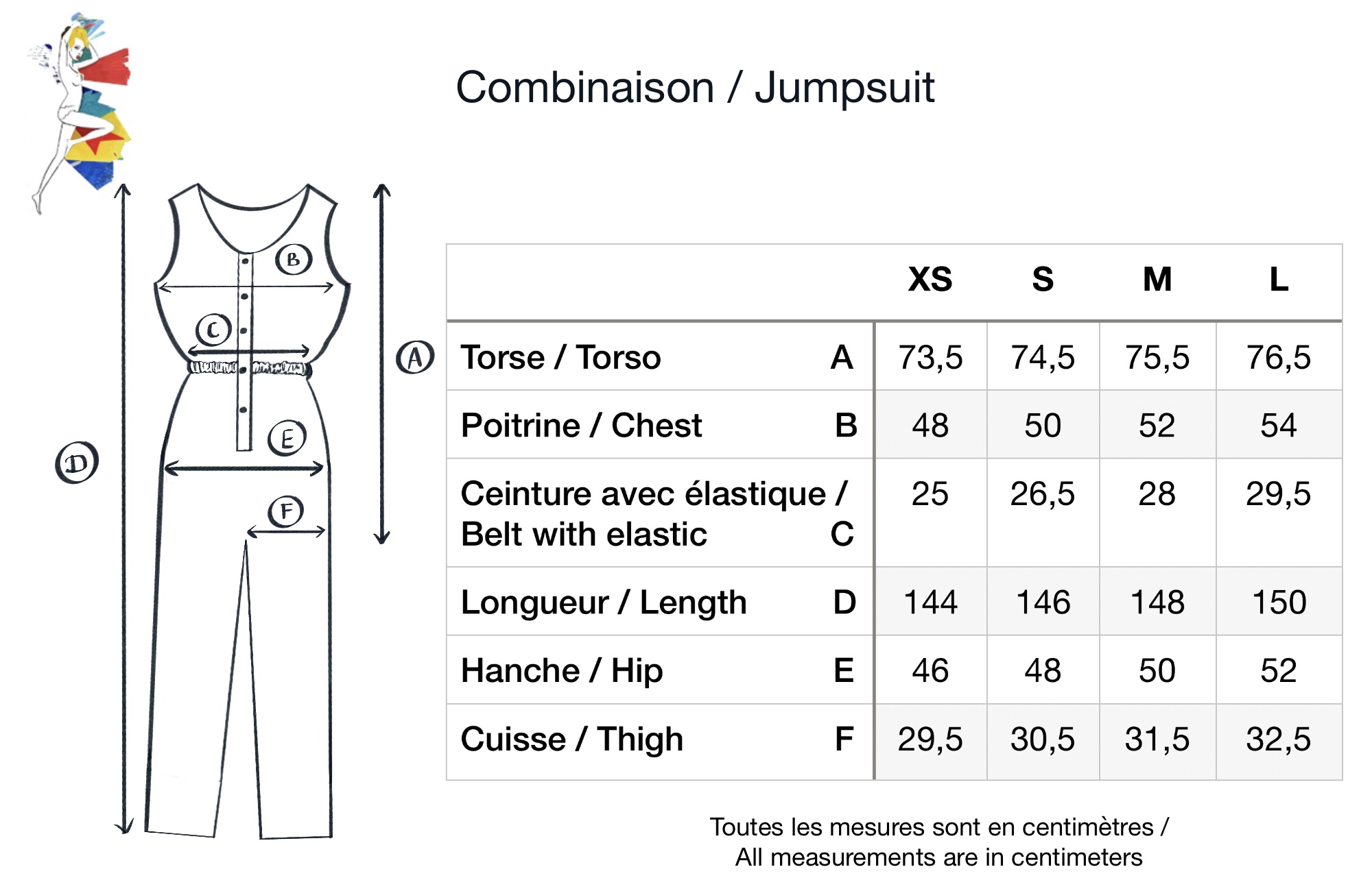 The model on the picture is wearing a size Small. For measurements please check our size chart. Please note the size chart is in centimeters.