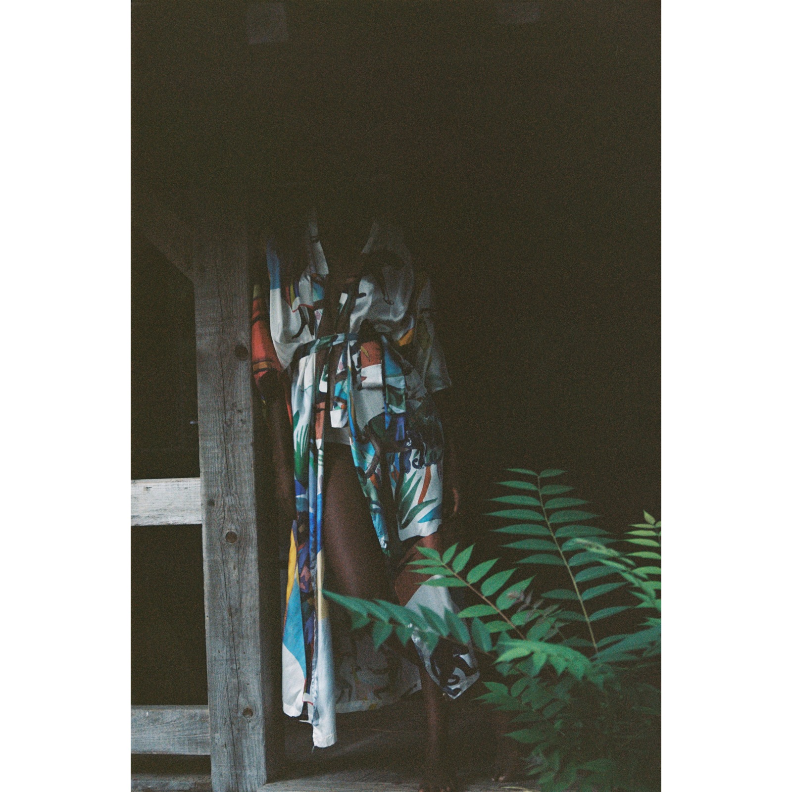 This piece comes in a unique size and is accompanied by a printed belt in the same fabric.