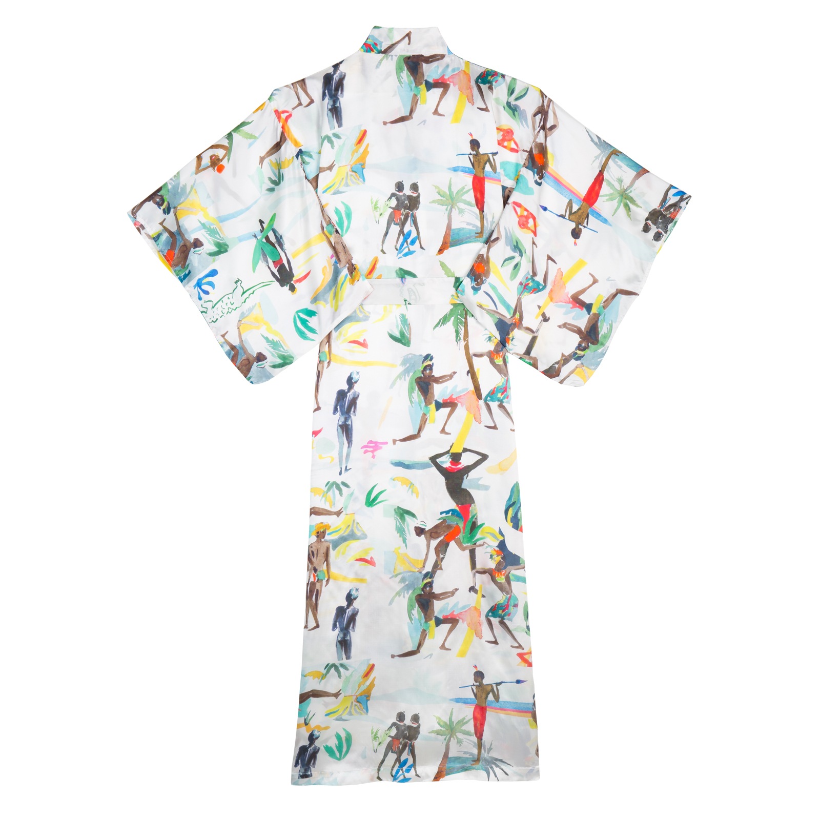 Viscose twill Kimono . African characters print all over. The name of this artwork is "Rave Party".
