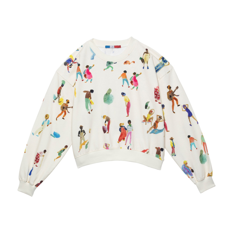 - Conseils : le sweat-shirt se porte en total look avec le jogging du même dessin. Le sweat est court mais n'est pas crop, il tombe au niveau de la ceinture.
