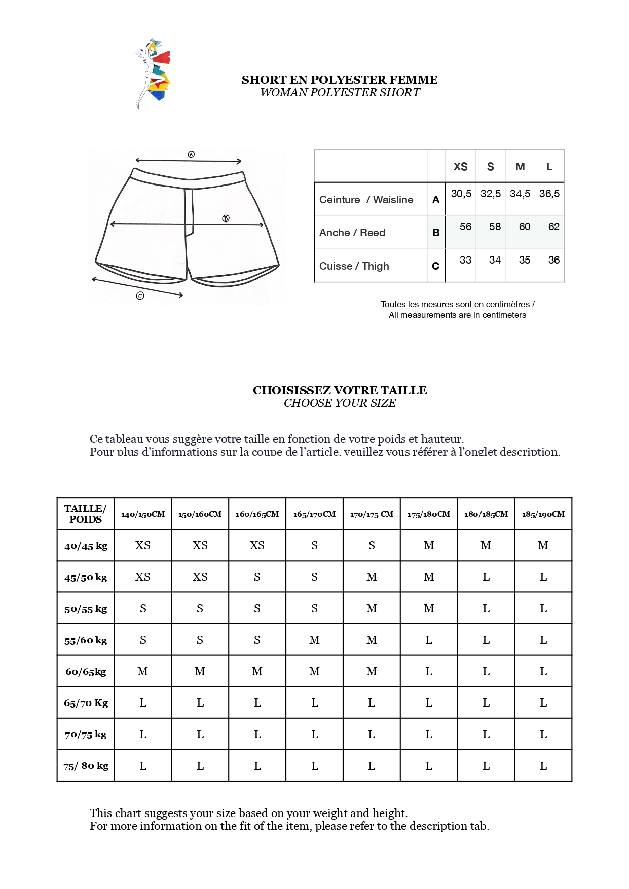 -Le mannequin mesure 1m75 et porte une taille S (Cela correspond à un 36 FR ou un 4 US).
