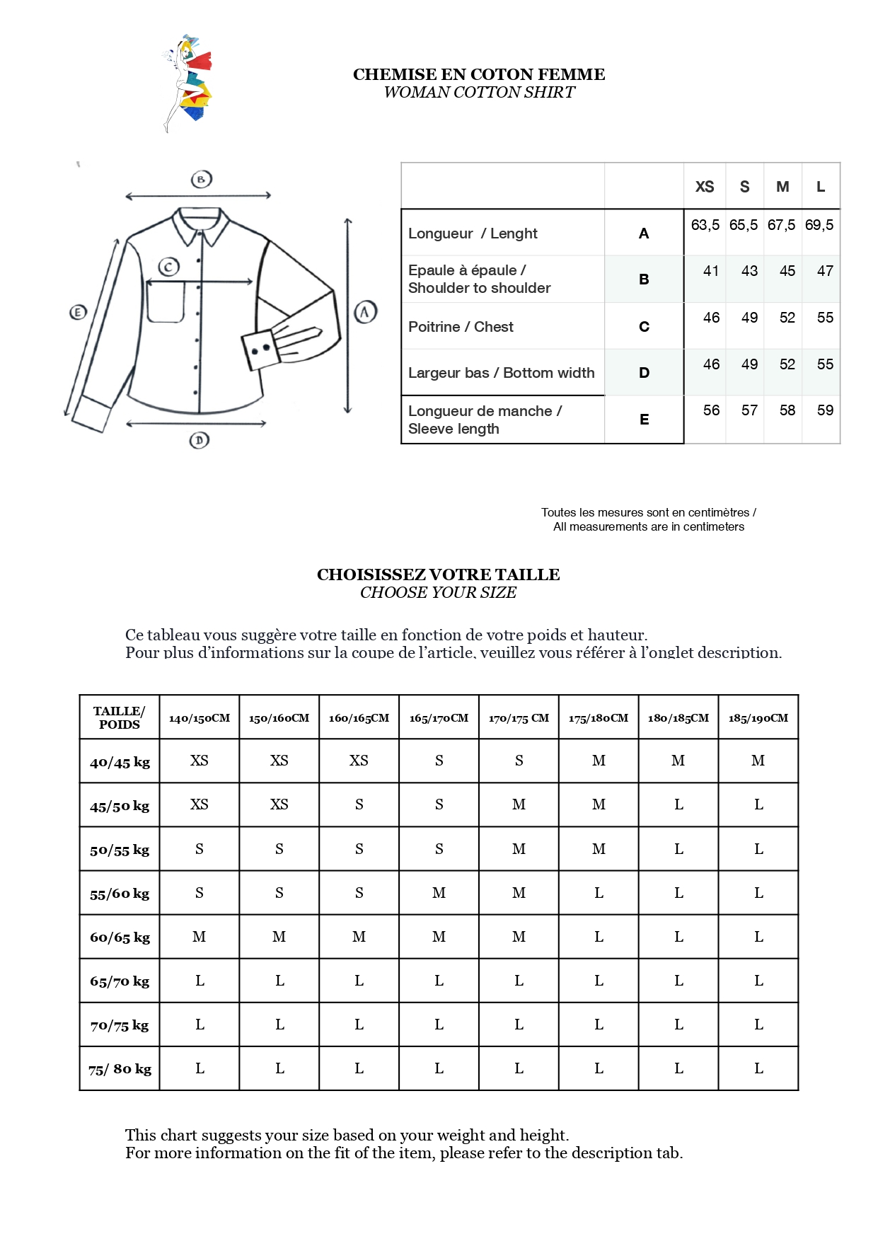 -Chemise en coton, coupe droite. Boutons en nacre. Poche se trouve sur le côté droit de la chemise.